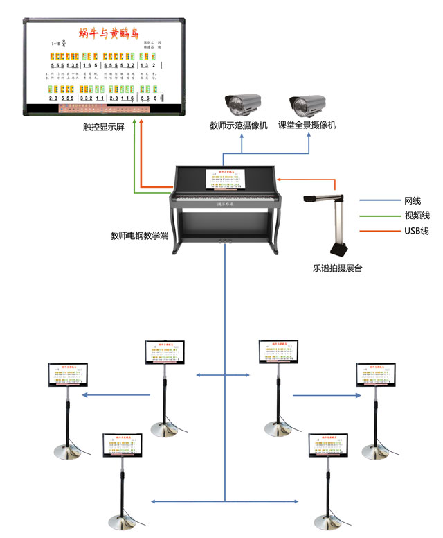 · 学生屏与教学大屏同步显示,便于学生观看授课过程、教师演奏示范;