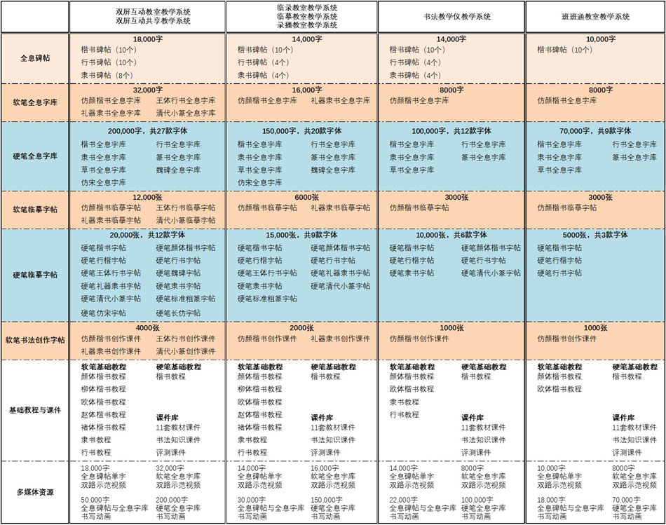 Ø 配备全息碑帖、软笔全息字库、硬笔全息字库及软笔基础教程等课件资源